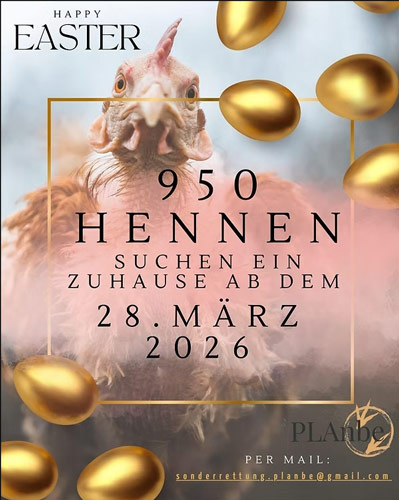 Ende März und Anfang April steht im Westerwald eine Hühnerrettung an, bei der etwa 950 braune und weiße Legehennen aus einer Bodenhaltung gerettet werden. Dafür werden jetzt schon künftige "Für-immer-Zuhause" gesucht!