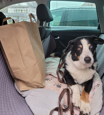 Nur für ihn öffnete sie kurzerhand ihren Laden zum exklusiv Shopping und spendierte ihm großzügig einen Regenmantel, einen Bademantel für nach der Physiotherapie, ein neues Halsband und noch einige Leckereien dazu. Bolle hat diese Abwechslung sichtlich genossen und seine Einkaufstour mit Bravour gemeistert! 1000-Dank dafür ❣️ ❣️