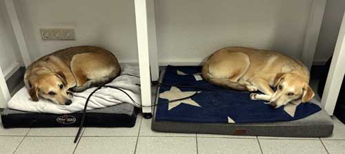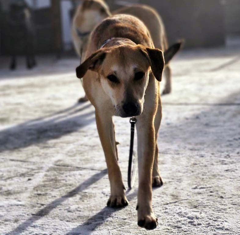 Im Tierheim hat sie sich toll entwickelt: beim Gassigehen ist sie aufmerksam, freundlich und zunehmend sicher. Im Hof zeigt sie sich angenehm ruhig, und im Büro hat sie ihren festen Lieblingsplatz – dort liegt sie entspannt, beobachtet das Geschehen und wirkt dabei völlig ausgeglichen. Diese Routine hat ihr sehr geholfen, selbstsicherer zu werden.