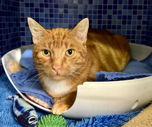 Kater Chili hat eine Geschichte hinter sich, die uns alle sehr bewegt hat. Er wurde schwer krank gefunden — mit einer massiven Flüssigkeitsansammlung im Bauchraum und in lebensbedrohlichem Zustand. Dank großem Einsatz und intensiver tierärztlicher Behandlung über viele Monate hinweg haben unsere Tierärzte ihn nicht aufgegeben — und Chili hat gekämpft.