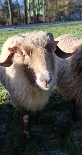 Das Quessant Schaf hatte im Sommer teilweise Probleme mit dem Kreislauf und eine Skudde, hat vermutlich aufgrund des Alters Wasser im Bauch eingelagert. Beide fressen und laufen soweit noch gut in der Herde mit. Alle Schafe wurden regelmäßig gegen Blauzunge geimpft und entwurmt.