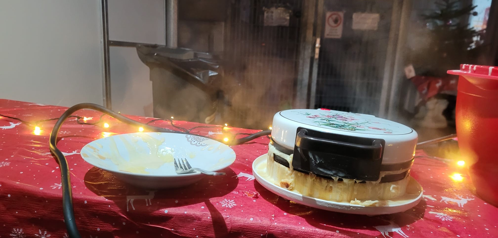 Ein kulinarisches Highlight waren natürlich die legendären Rosmarinkartoffeln mit Gemüse – vollständig gespendet, eine wirklich großartige Geste. Dazu Glühwein, Waffeln, Kuchen, Chili, Grill – alles miteinander sorgte für genau die gemütliche Stimmung, die man sich zur Adventszeit wünscht.