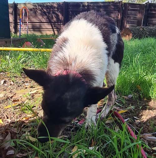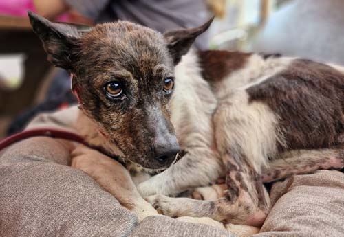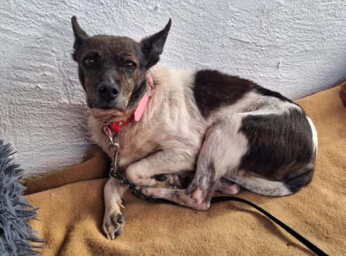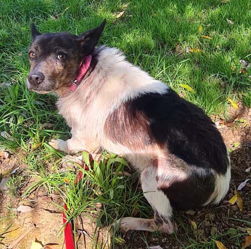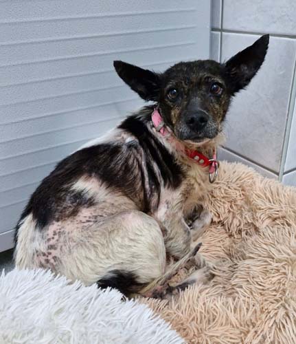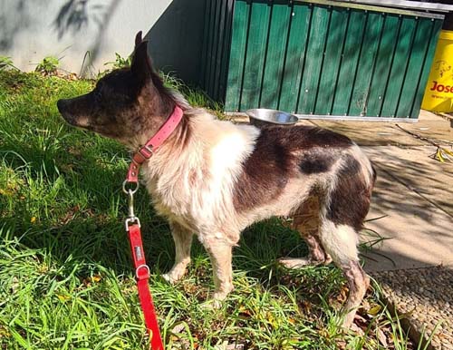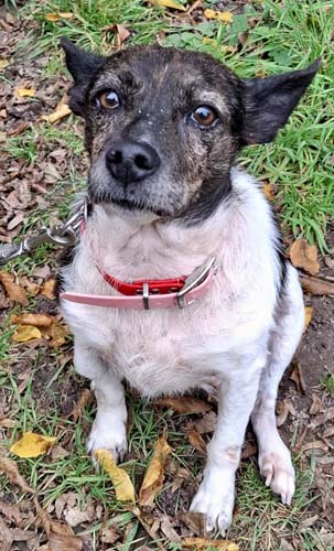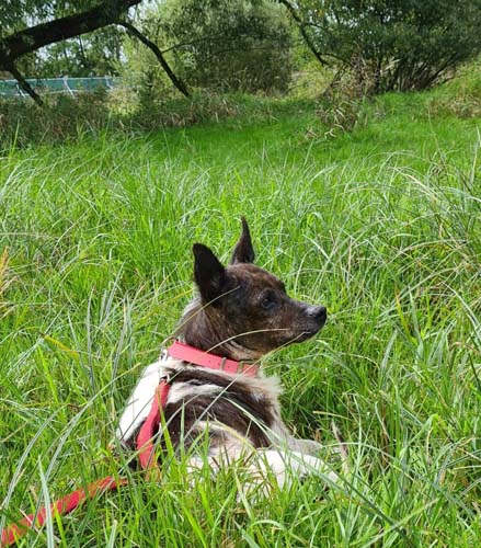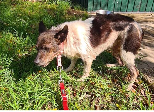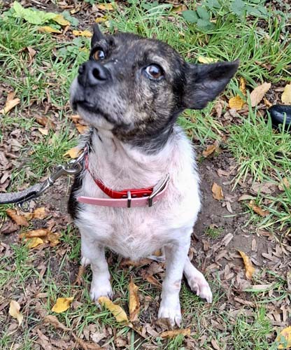 Seine Zähne sind leider eine Katastrophe, seine Haut muss sich erst einmal erholen und am Bein hat er eine Umfangsvermehrung, bei der wir noch klären müssen, worum es sich handelt. Auch sein Bewegungsapparat ist etwas „chaotisch“ – wir gehen stark davon aus, dass eine Französische Bulldogge mitgemischt hat, das sieht man deutlich, wenn er läuft.