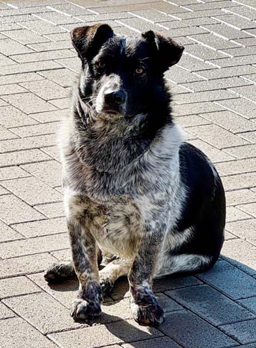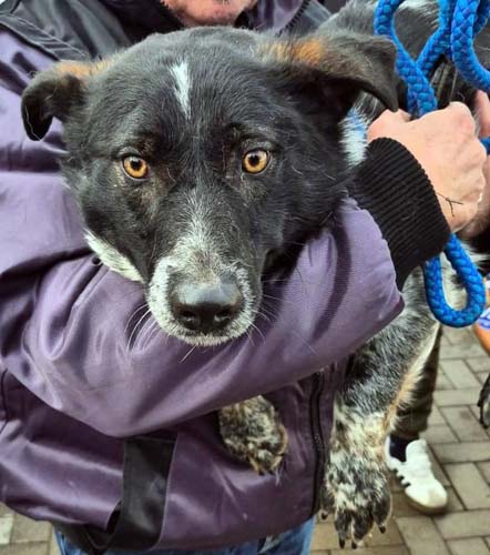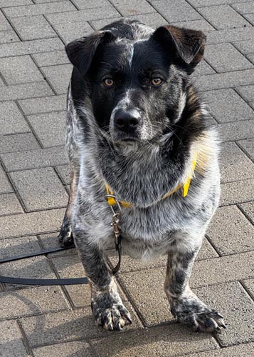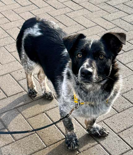 Jori steht mittlerweile schwanzwedelnd am Zaun und lässt sich durchs Gitter das Näschen kraulen. Im direkten Kontakt im Zwingern bleibt er noch zurückhaltend und meidet den engen Körperraum, doch er bleibt freundlich und passiv, selbst wenn er sich bedrängt fühlt. Kann er sich der Situation entziehen, schüttelt er sich kurz und bleibt in der Nähe – nicht nachtragend, ohne Abwehr, sehr sozial.