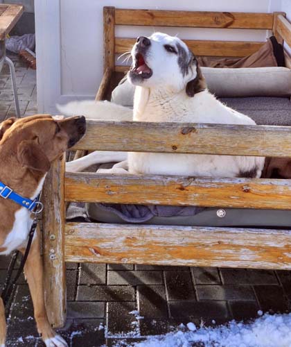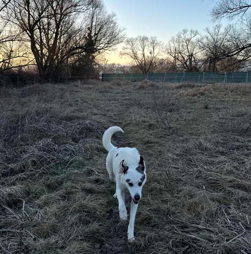Sascha, unser Leinenheld, kümmerte sich um Kemos neuen Rolli und zauberte gemeinsam mit Jessica von Rollin’ Dogs an einer Rollstuhlspende von Bulli Herrmann den perfekten an Kemo angepassten Rolli in 2021. Mit der Zeit stellte sich heraus, das Kemo überhaupt kein Fan war, so lief er vorzugsweise auf 3 Beinen rum. Mittlerweile ist er der dreibeinige Hof-König des Tierheim Gelnhausen.