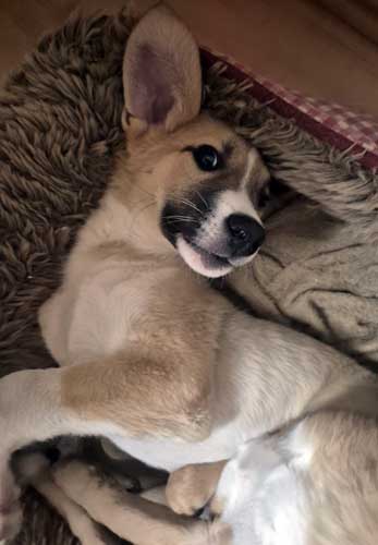 Wie es sich für ein echtes Hundekind gehört, möchte er spielen, toben, die Welt erkunden und natürlich ganz viel kuscheln. Für jeden kleinen (und manchmal auch größeren) Welpen-Unfug ist er zu haben.