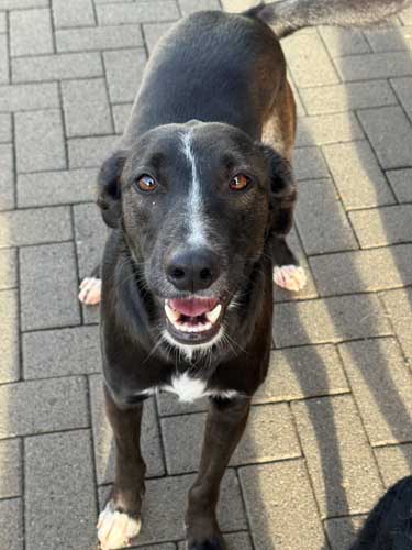 Dieser wunderschöne, athletische Rüde ist lebhaft, freundlich und im Umgang mit Menschen wunderbar fein und aufmerksam. Mit anderen Hunden versteht er sich sehr gut, nur beim Futter darf man kurz aufpassen, da gewinnt manchmal die Begeisterung über die Etikette – aber das ist schnell geregelt.
